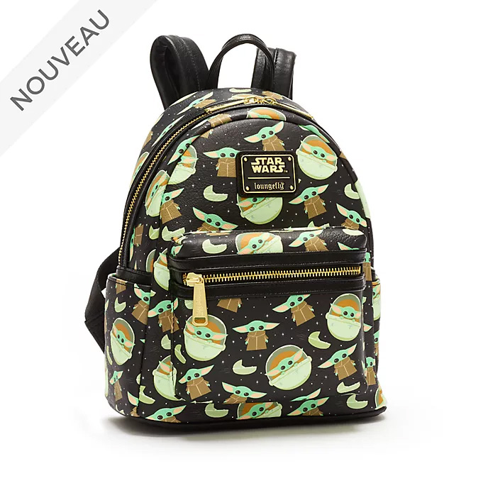 Sans surprise, Loungefly a sorti sa collection Mandalorian également avec un sac à dos clair dans un premier temps puis plus récemment, un autre mini sac à dos au motif The Child en all over ! Jugez plutôt :