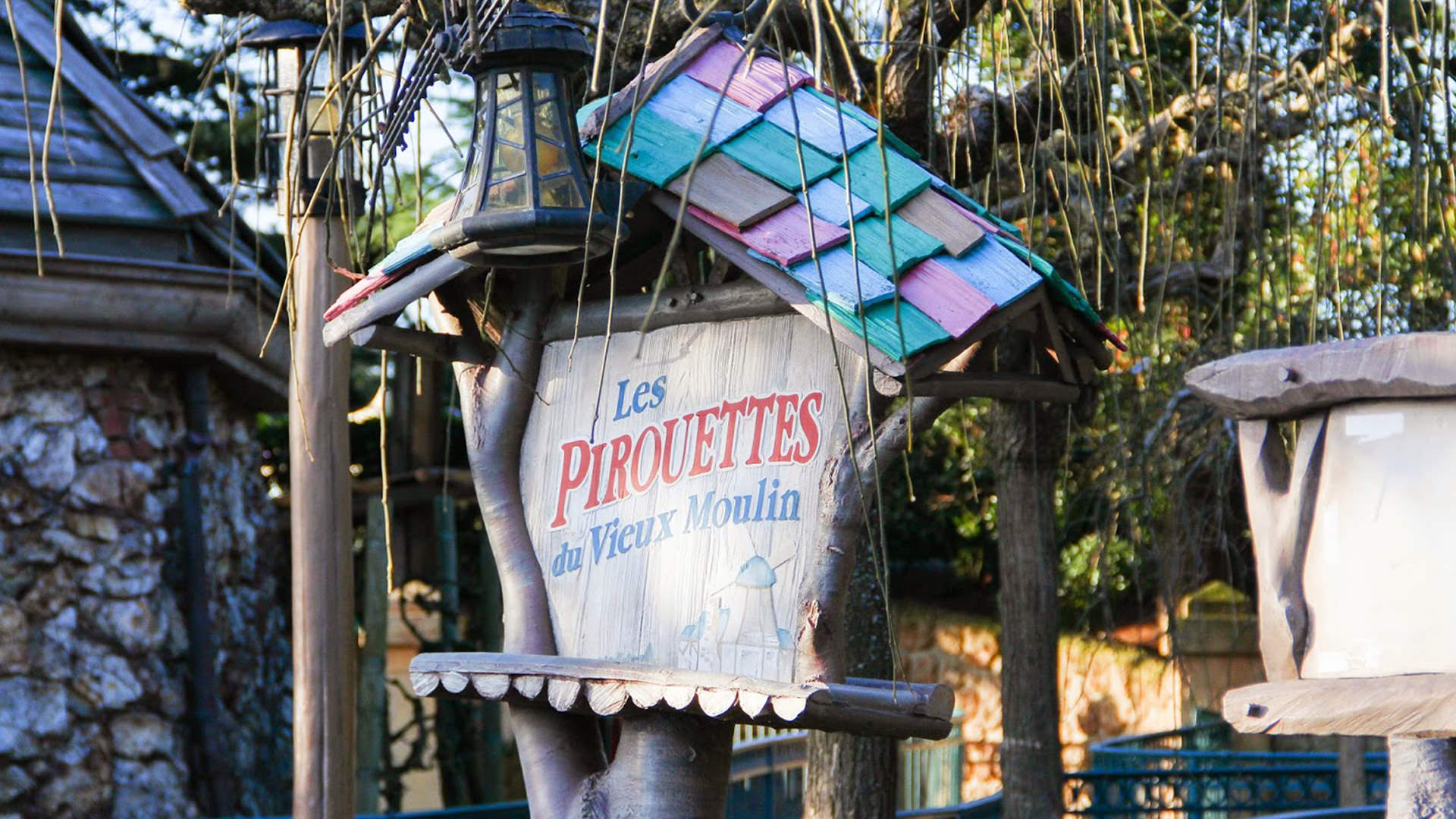 Des Pirouettes du Vieux Moulin il ne reste aujourd’hui plus de traces ou presque. Le mat est toujours là, rappelant aux plus anciens l’ancienne vie du moulin de Fantasyland. En vous approchant, vous reconnaitrez aussi l’ancienne file d’attente qui sert parfois encore lorsque des personnages prennent possession de l’espace voisin pour des photos avec les visiteurs. Le quai d’embarquement a quant à lui été transformé en coin fumeur il y a quelques mois par Disneyland Paris. Enfin, The Old Mill est redevenu un point de restauration, vendant boissons chaudes toute l’année à Fantasyland !