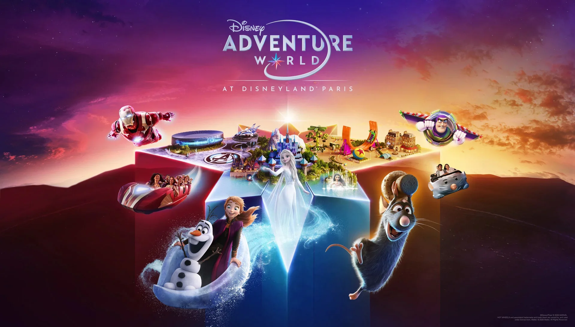 Le land Reine des Neiges ( World of Frozen ) et la zone du lac de Disney Adventure World ( Adventure Bay ) ouvrent tous deux le 29 mars 2026 ! Cette ouverture marquera aussi le changement de nom du second parc de Disneyland Paris, Walt Disney Studios qui devient par la même occasion Disney Adventure World.