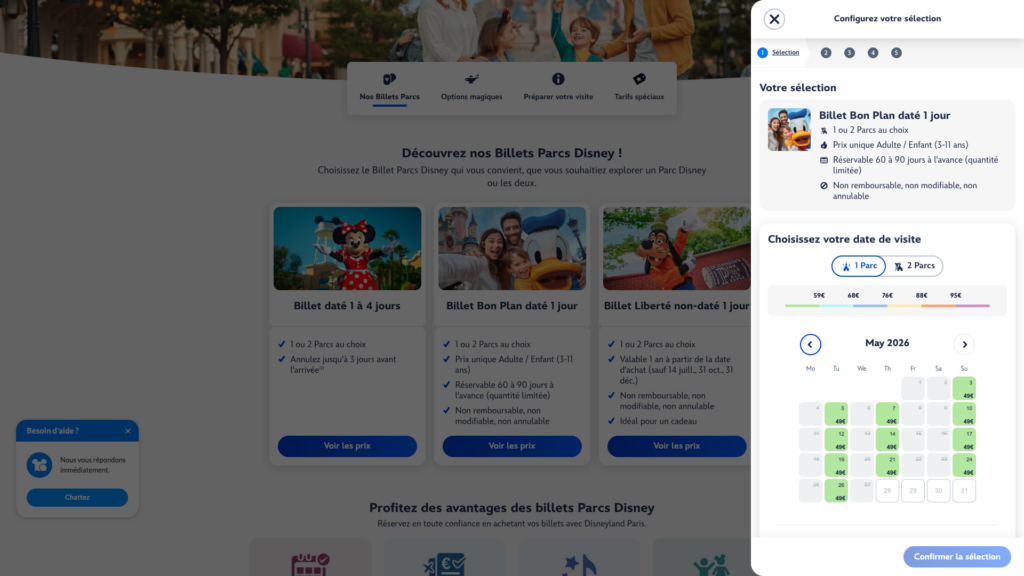 Le Billet Bon plan à 49€ est vendu entre 60 et 90 jours à l’avance. Sa disponibilité est aléatoire et à la discrétion de Disneyland Paris.