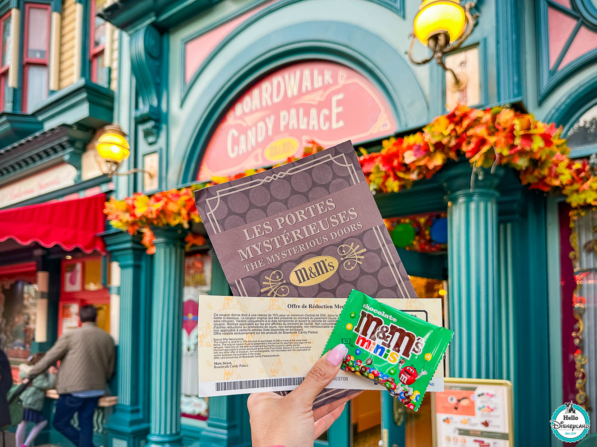 Pour la chasse au trésor d’Halloween avec M&M’s à Disney, les visiteurs gagnent un sachet de M&M’s et un bon de réduction de 15% valable dans la boutique M&M’s du Parc Disneyland