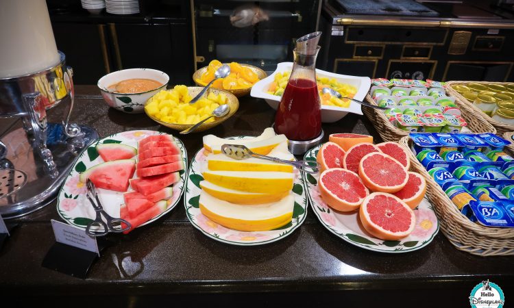 Le petit déjeuner du Disneyland Hotel se prend dans les restaurants Inventions et California Grill. Les deux restaurants ne font plus qu’un pour l’occasion. Les produits proposés sont les mêmes, d’un côté comme de l’autre. Vous prenez donc votre petit déj avec vue sur Main Street USA.