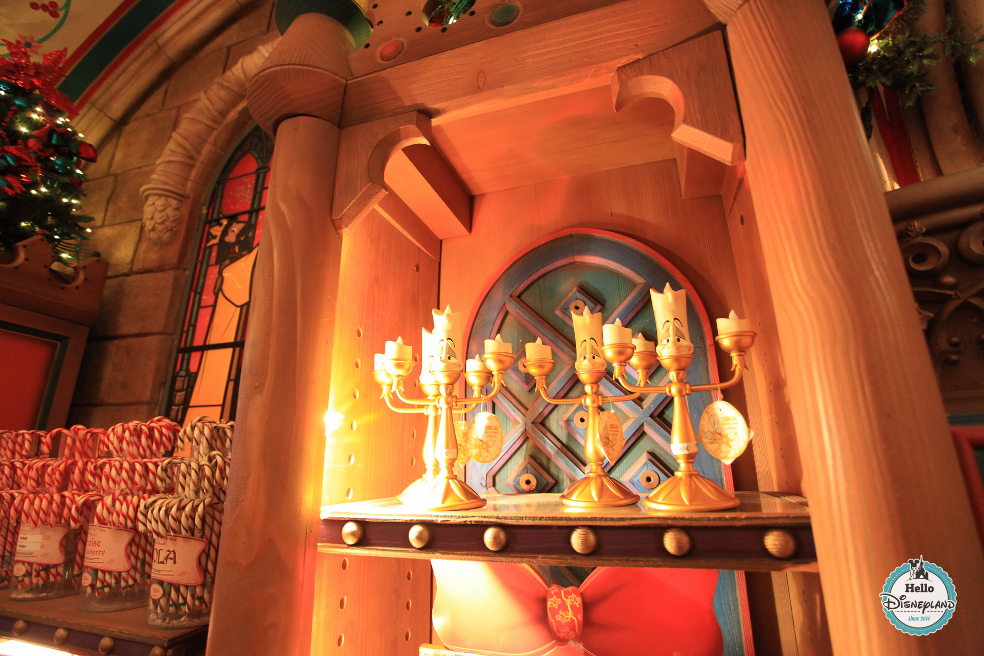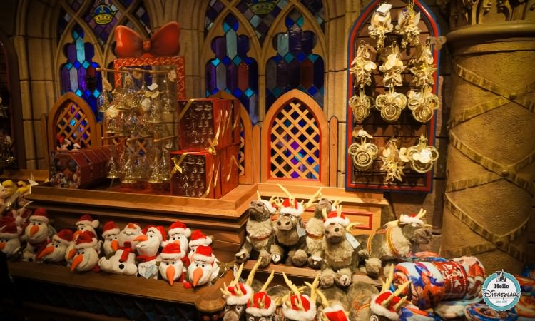 Décorée tout l’année sur le thème de Noël, La Boutique du Château est conçue telle une véritable pièce du Château, et en observant les détails au mur, vous verrez des éléments qui rappellent le film La Belle au Bois Dormant.