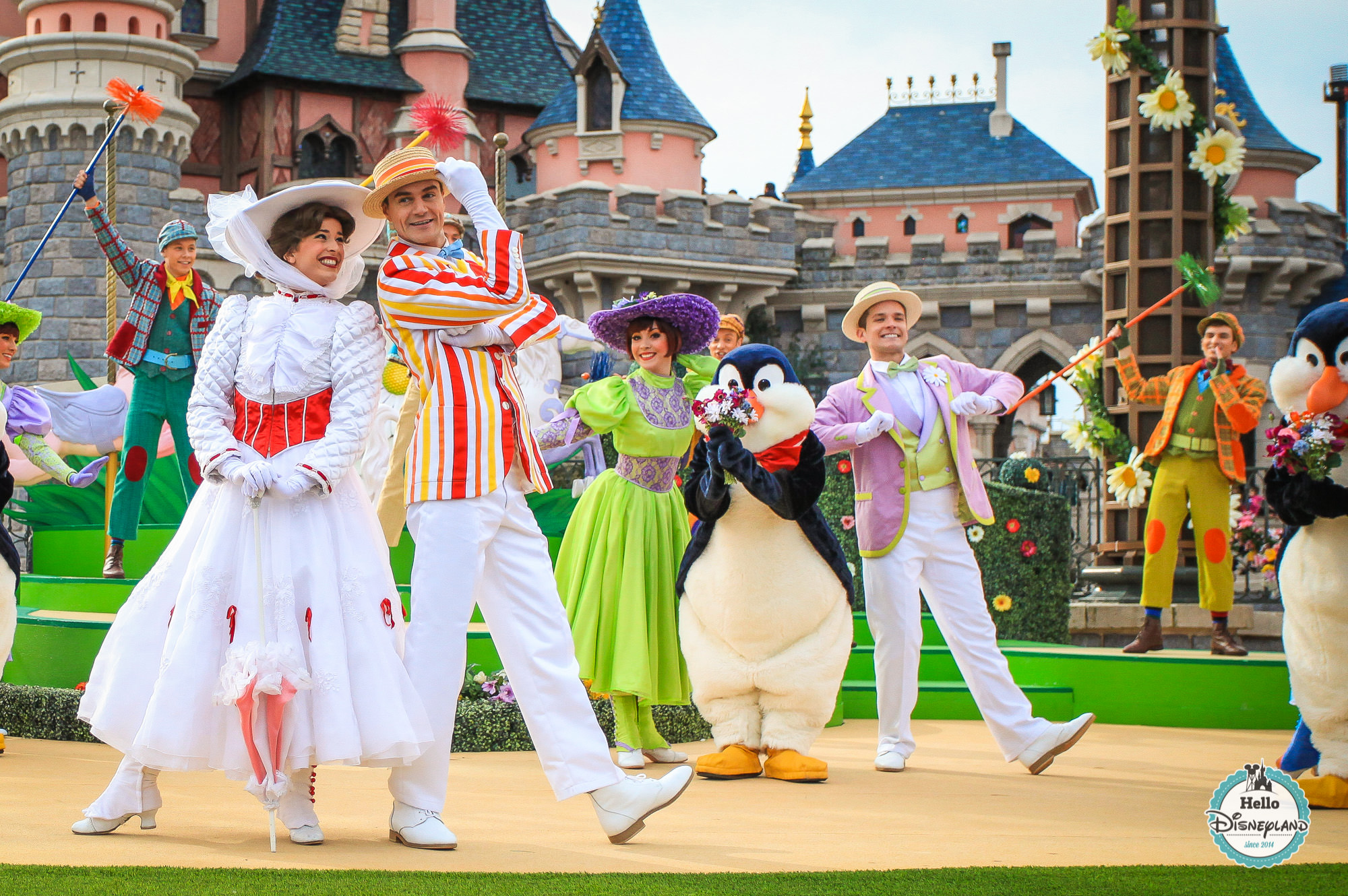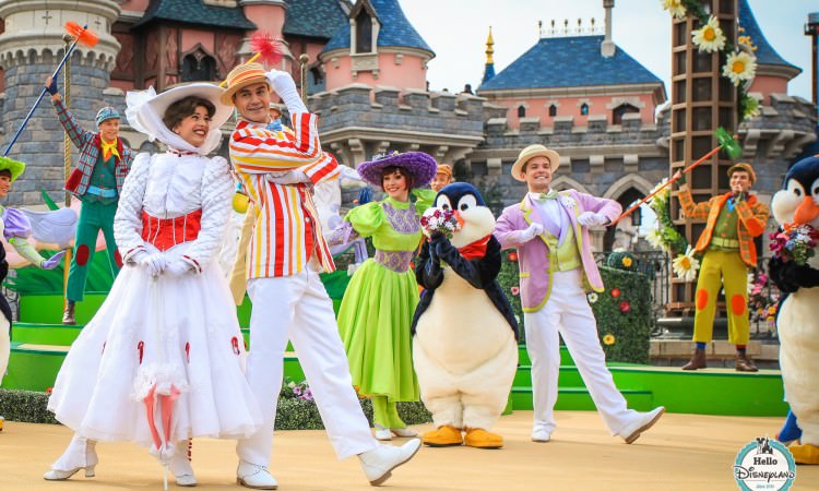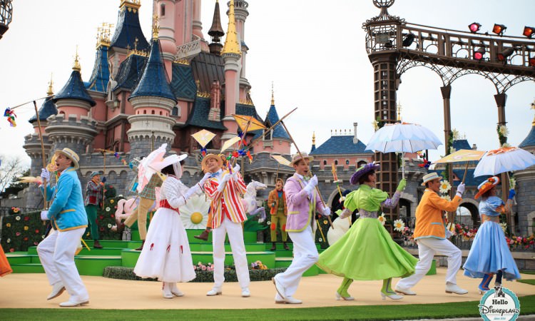 Bienvenue à la Belle Saison est un spectacle d’une quinzaine de minutes qui a lieu plusieurs fois par jour au Théâtre du Château. Pour ceux qui ont connu la version 2014 de Swing into Spring, c’est un peu la version améliorée du spectacle de Mary Poppins sur Main Street USA. Enfin presque … En tout cas, c’est l’occasion de retrouver Mary Poppins, Bert, les 3 pingouins et toute une bande de danseurs colorés au style ancré dans les années 40-50 autour des titres phares du célèbre film de Walt Disney que sont « Supercalifragilisticexpialidocious », « Jolly Holiday », « Step in Time », « Let’s Go Fly a Kite ».