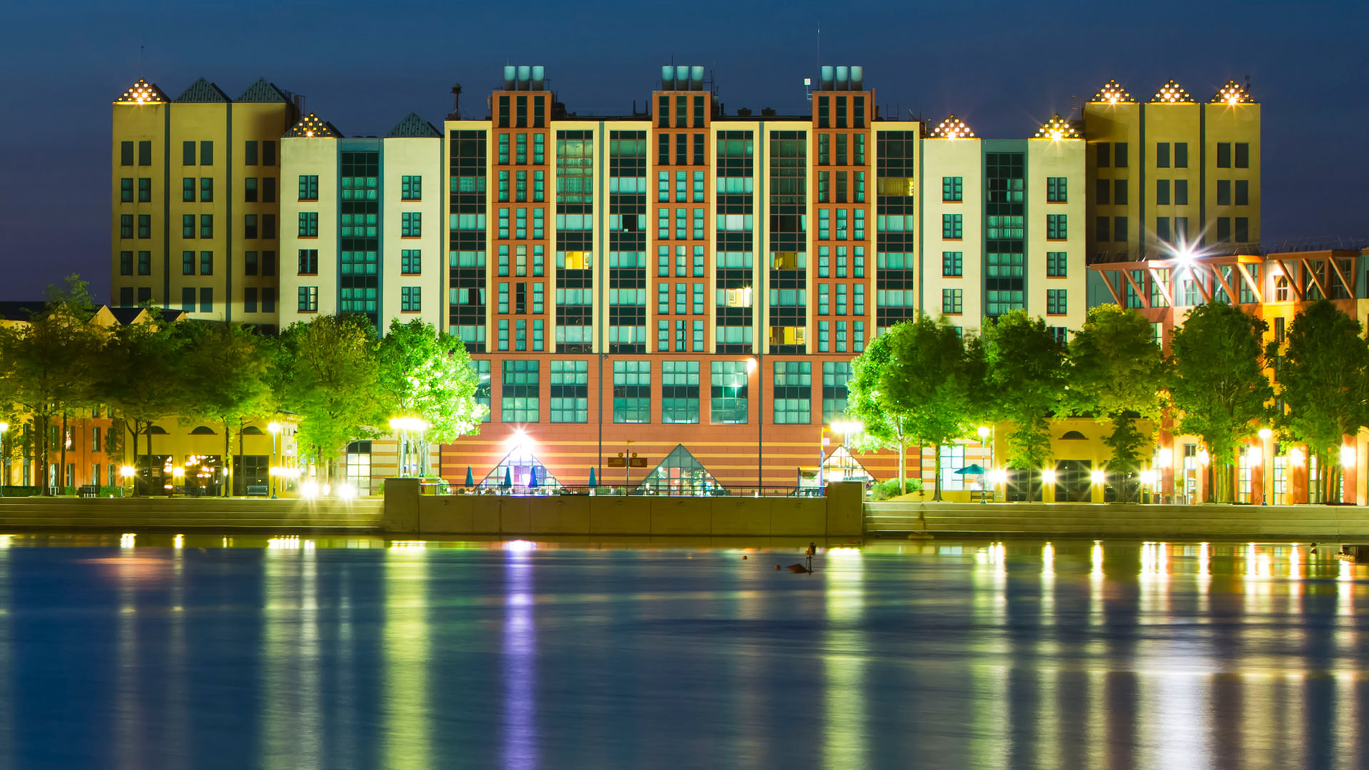 En hiver, l’entrée de l’hôtel côté Disney Village accueille une patinoire sur ce qui était jadis une fontaine dont le sol arborait une vaste fresque mettant à l’honneur la carte de Manhattan et la Statue de la Liberté. Les 2 bâtiments jouxtant la patinoire sont actuellement vide.