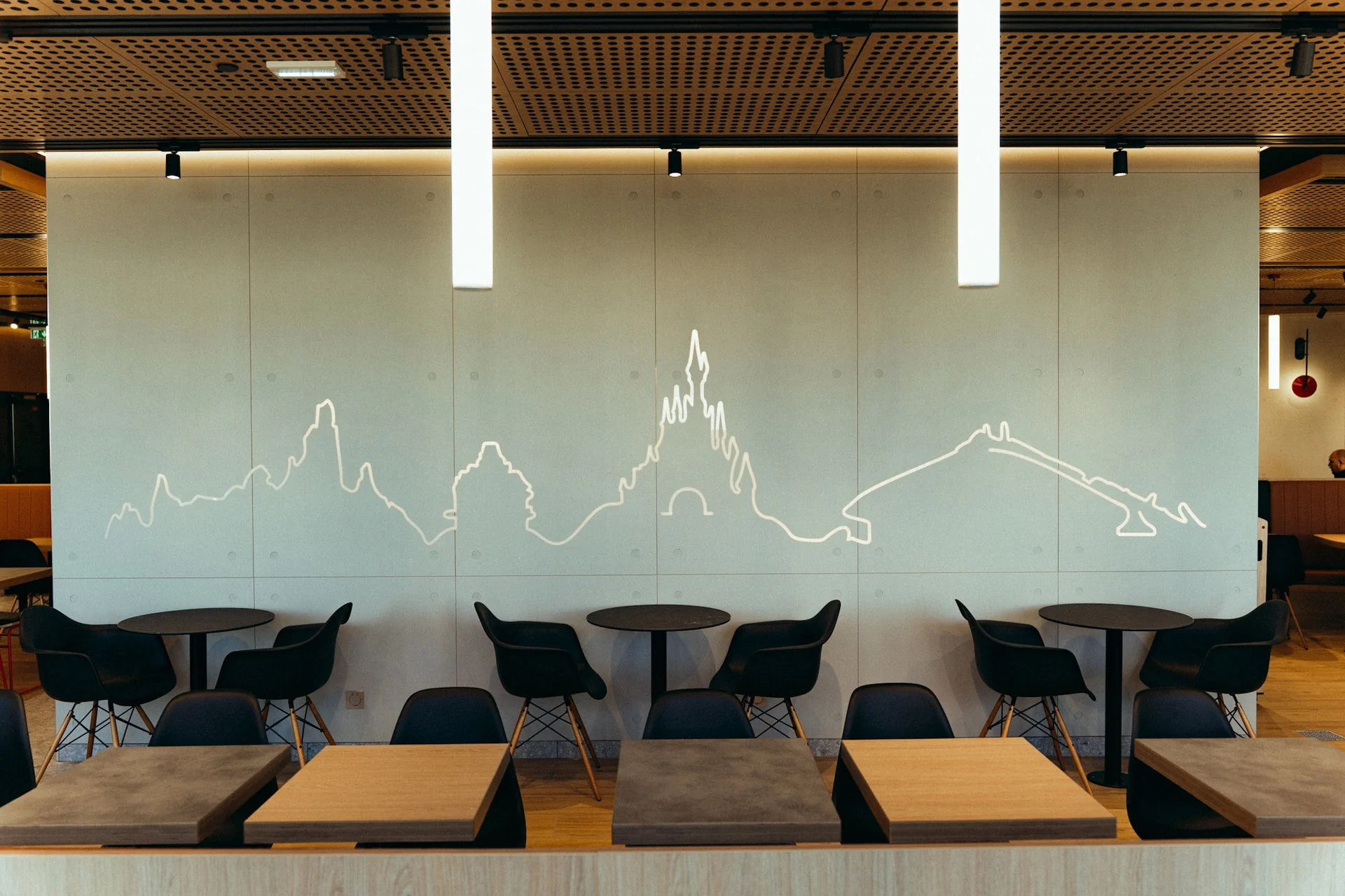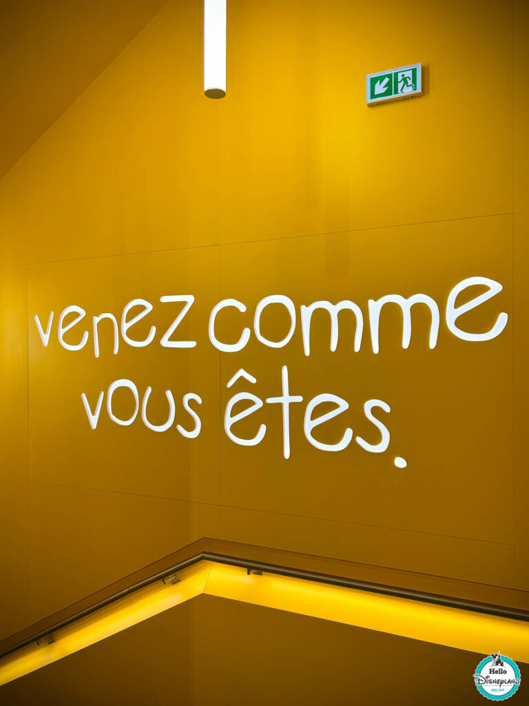 Côté architecture et design, le restaurant s’aligne sur la tendance green de McDonald’s en France depuis quelques années avec une façade en bois, des espaces lumineux, un mur végétal et des infrastructures exemplaire en terme d’impact environnemental grâce à des panneaux solaires, des espaces verts et des jardinières sans perdre son identité forte pour autant ! Il y a même quelques détails Disney !