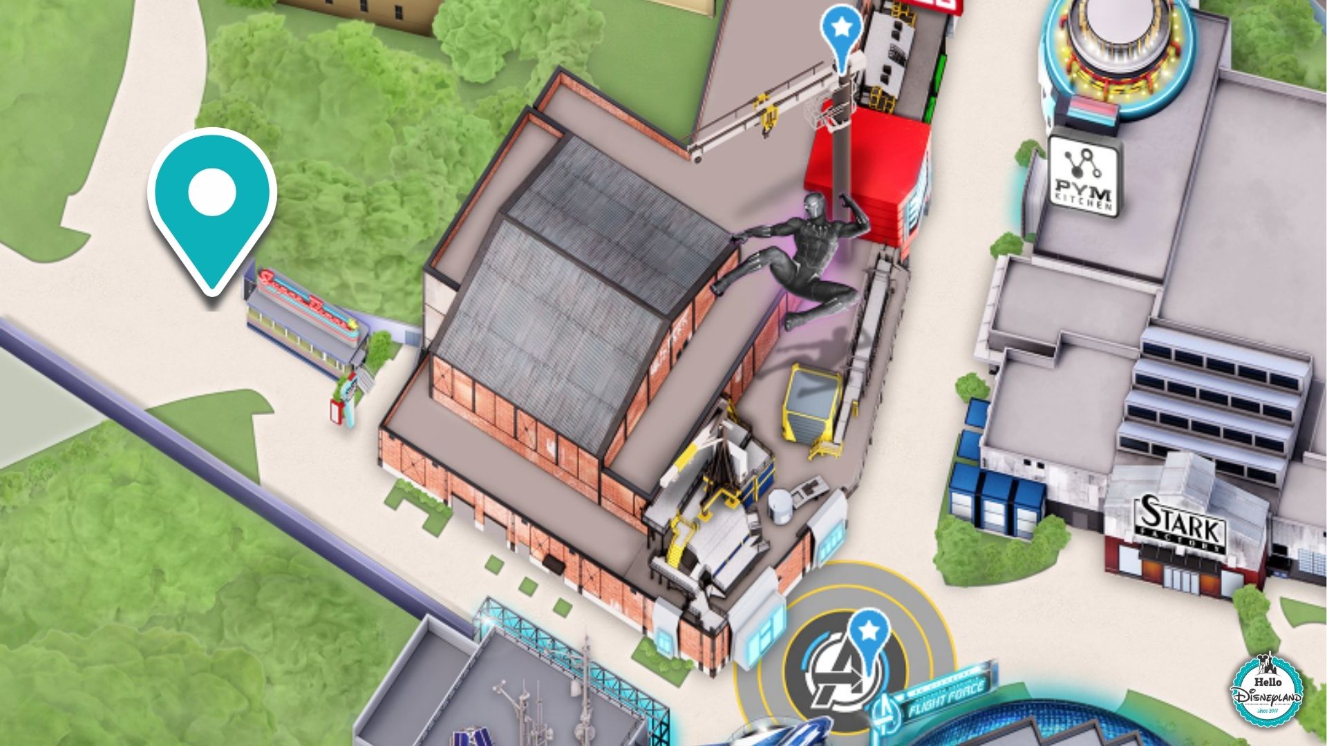 Il est situé au bout d’Avengers Campus, derrière la Tower of Terror :